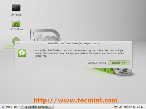 11. Linux Mint 15 installation completed. Eject boot media and