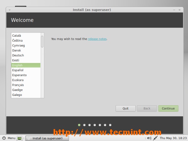 Linux Mint 15 Language Selection