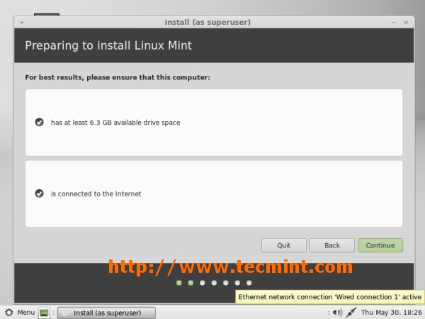 5. Preparing to install Linux Mint, click on ‘Continue’.